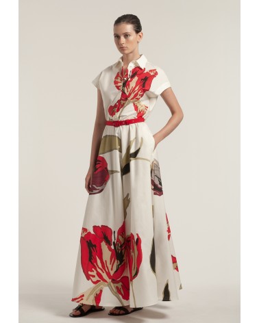 Robe longue imprimée manches courtes Sara Roka, ceinture rouge incluse